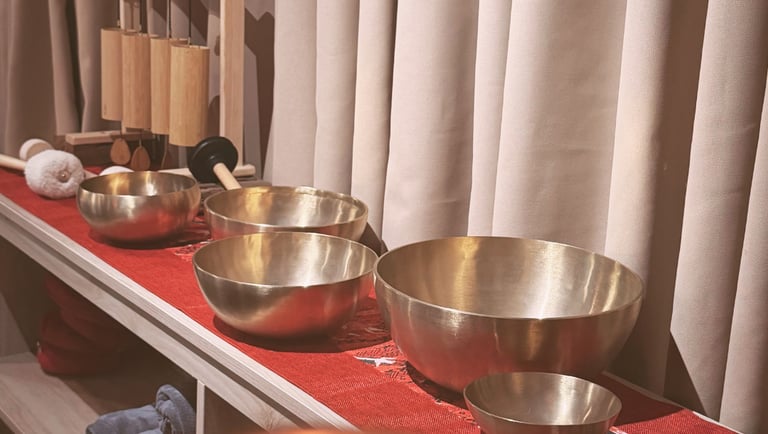 60 phút cá nhân chuyên sâu cùng chuông trị liệu và bộ thanh cộng hưởng, tạo rung động sâu giúp thư giãn và điều hòa hệ thần kinh.
